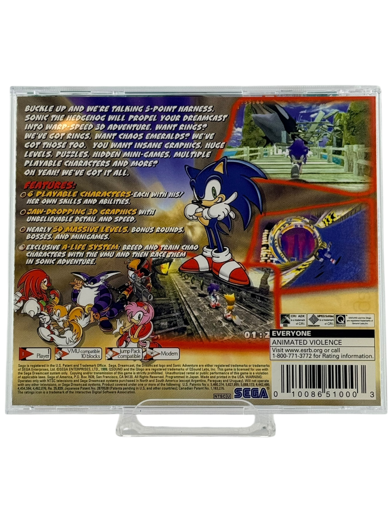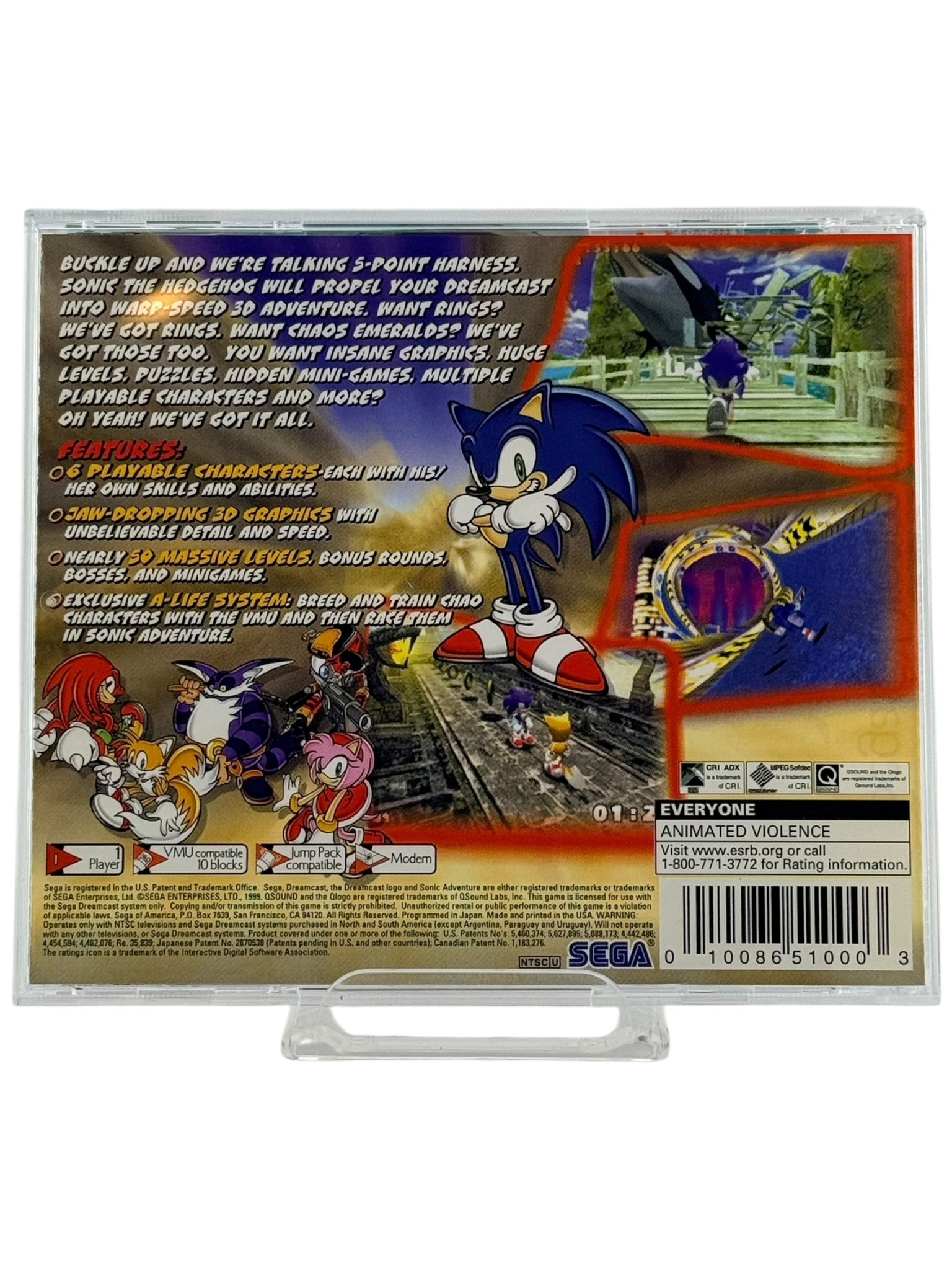 Race into the 3D era with Sonic Adventure, the iconic platformer that redefined Sega’s legendary blue blur. Join Sonic and his friends as they battle Dr. Eggman to save Station Square and the mystical Chaos Emeralds from destruction. With six playable characters, fully voiced storylines, and an energetic soundtrack, Sonic Adventure combines high-speed action with exploration, cinematic storytelling, and unforgettable Dreamcast charm.