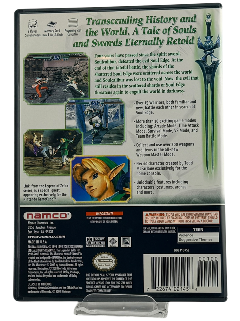 Experience one of the most acclaimed fighting games of its era with Soul Calibur II on the GameCube — featuring the legendary Link from The Legend of Zelda as an exclusive playable character. Battle across stunning 3D arenas using a deep weapon-based combat system that blends precision, strategy, and lightning-fast action. With its fluid animation, rich storylines, and memorable character roster, Soul Calibur II remains a cornerstone of the genre and a fan favorite for competitive and casual players alike.