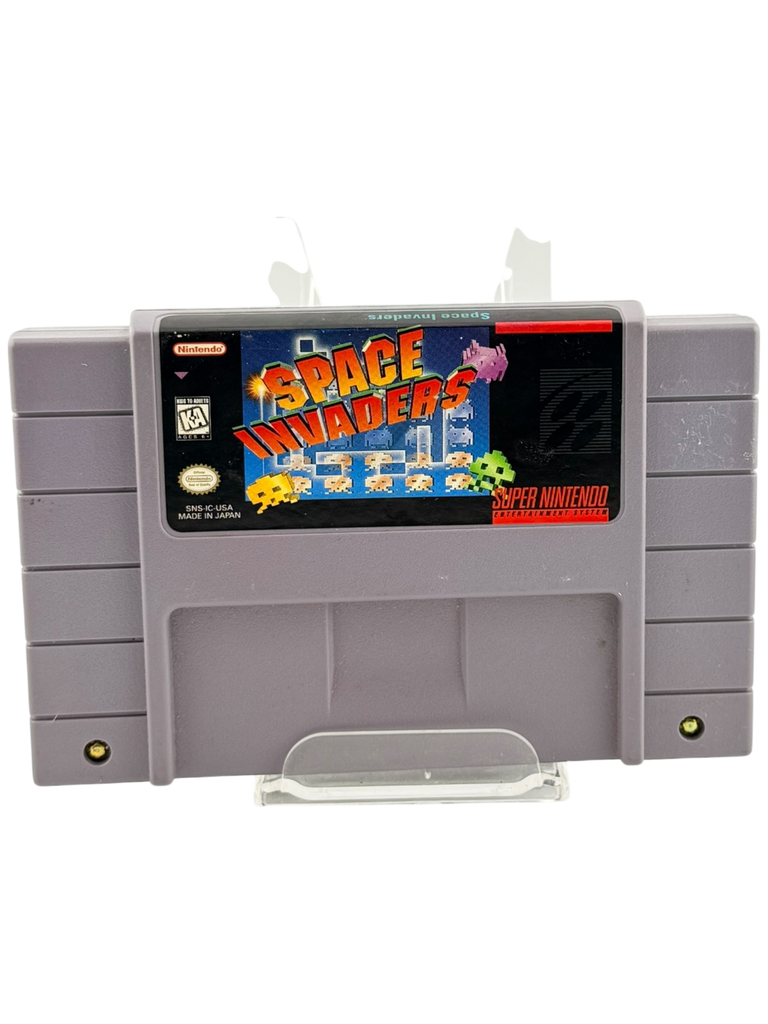This listing is for a loose Super Nintendo (SNES) game cartridge of Space Invaders. The original cartridge has been tested and is fully functional. The label and cartridge shell show light to moderate signs of wear consistent with normal use and age for a vintage SNES title. This item includes the game cartridge only—no original box or manual is included. Please review all photos carefully for exact cosmetic condition, as they show the actual item you will receive.