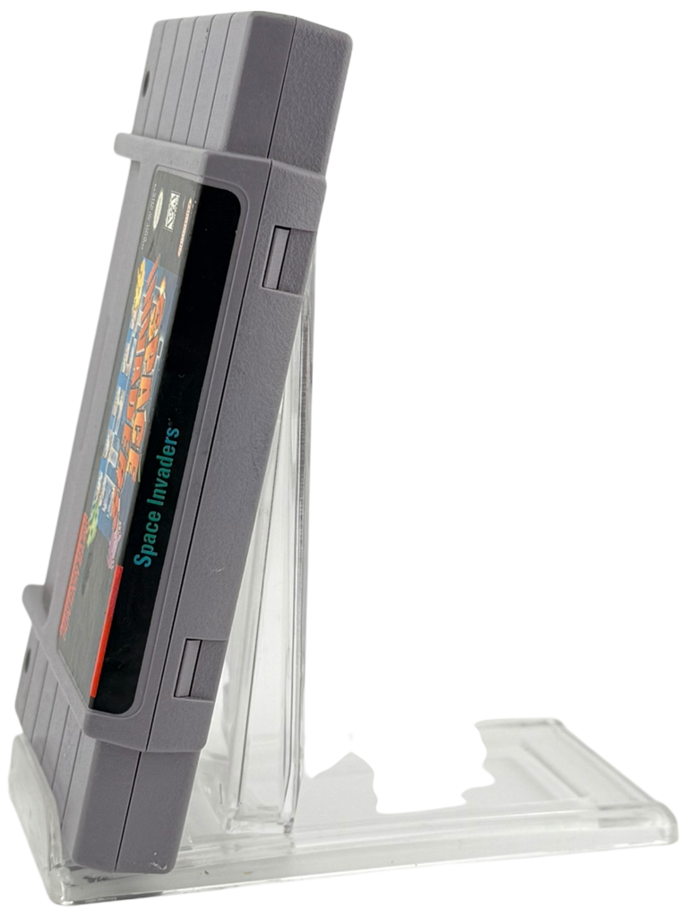 Space Invaders for the Super Nintendo reimagines the legendary arcade shooter with enhanced visuals, new gameplay modes, and expanded challenges while staying true to the simple, addictive formula that started it all. Players defend Earth from descending waves of alien invaders using precise movement, timing, and rapid-fire reflexes.