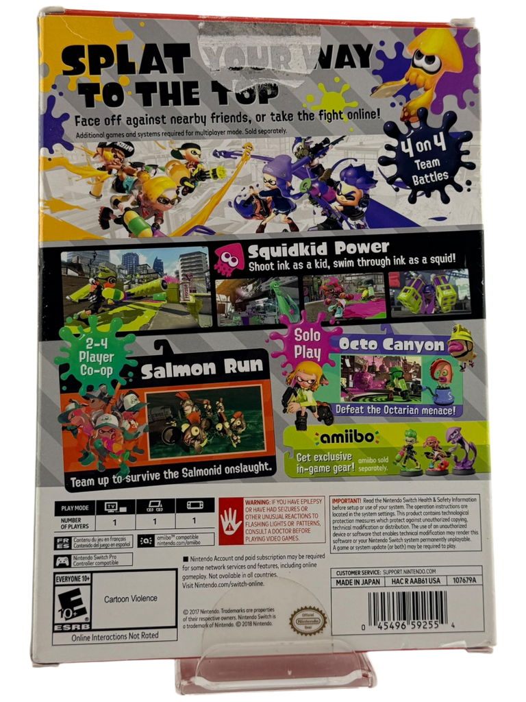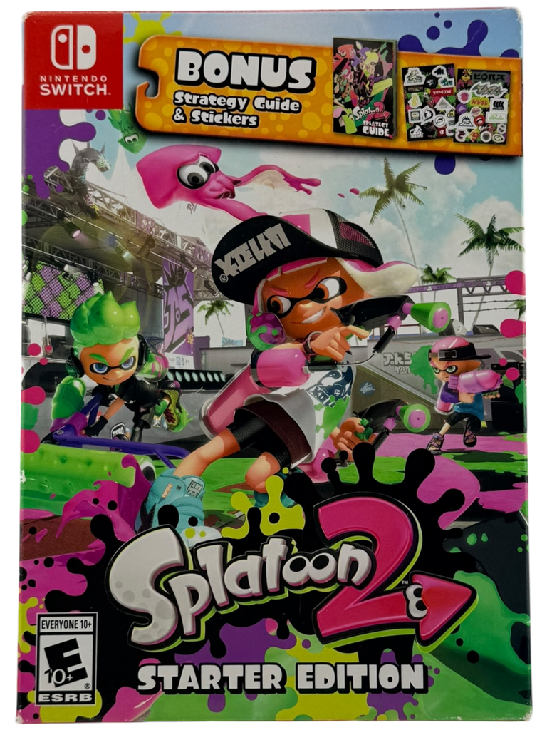 Item Description: Splatoon 2 [Starter Edition] for Nintendo Switch delivers Nintendo’s vibrant, fast-paced multiplayer shooter with style, personality, and creativity to spare. Players dive into colorful turf battles where strategy, teamwork, and quick reflexes matter just as much as aim, splashing ink to claim territory and outmaneuver opponents. In addition to competitive multiplayer, the game features a robust single-player campaign that introduces core mechanics and expands the quirky Splatoon universe. The Starter Edition is an ideal entry point for new players, offering the full Splatoon 2 experience in a collector-friendly package. With its distinctive art style, energetic soundtrack, and endlessly replayable gameplay, this Complete in Box copy is a great addition for Nintendo Switch collectors and fans of inventive, competitive action games.