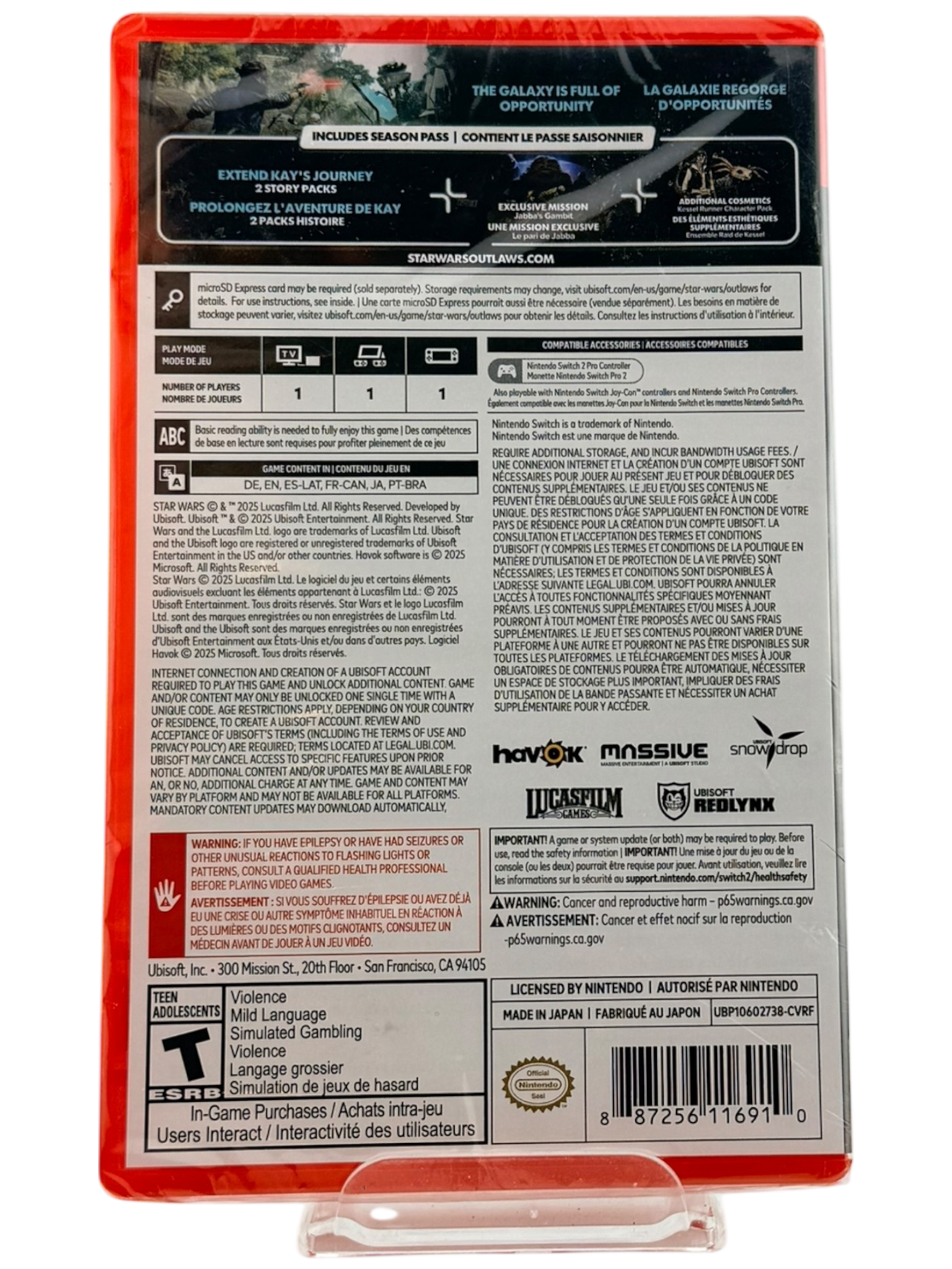 The Gold Edition enhances the adventure with premium bonus content and expanded access that adds long-term value for dedicated players. With its next-generation presentation and fresh perspective on the Star Wars universe, Star Wars Outlaws: Gold Edition is a standout sci-fi release. This sealed Nintendo Switch 2 copy is a must-have for collectors and fans looking for a definitive edition.