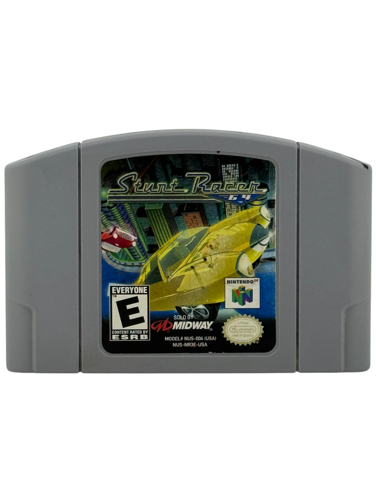 This is a loose cartridge of Stunt Racer 64 for the Nintendo 64. The original box and manual are not included. The cartridge is authentic, tested, and in good working condition. Light cosmetic wear may be present from normal use—please see listing photos for full condition details.