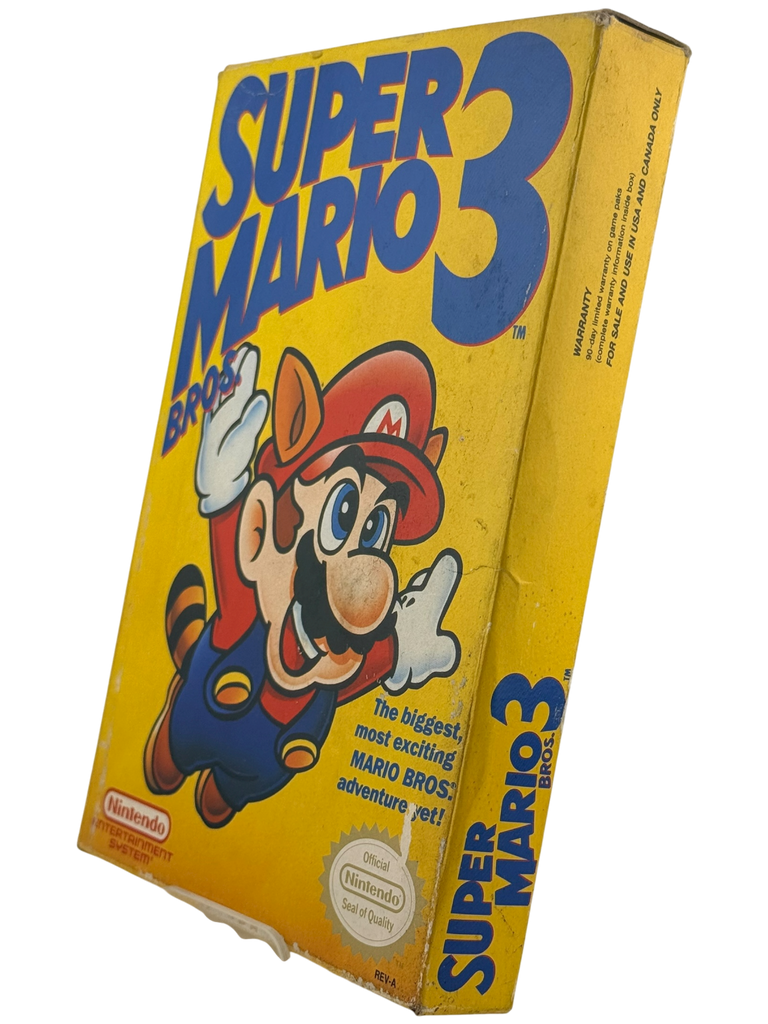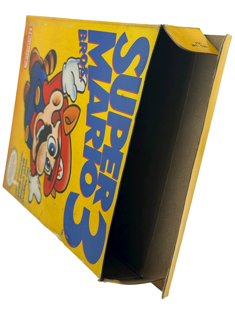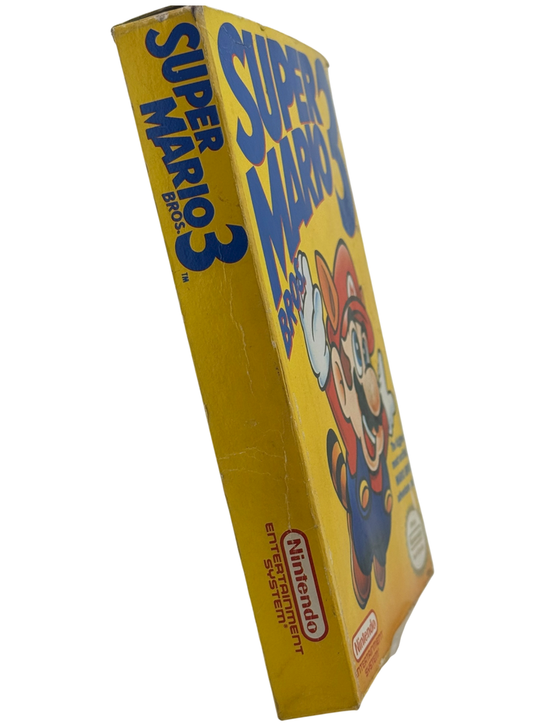 This is a complete in box copy of Super Mario Bros. 3 [Left Bros Variant] for the Nintendo Entertainment System (NES). The listing includes the original game cartridge, instruction manual, and box with cover art. The cartridge has been tested and is fully functional, showing only light wear consistent with age. The manual and box are intact and in good overall condition with some typical shelf wear. Please review the photos provided for a detailed look at the item’s condition.