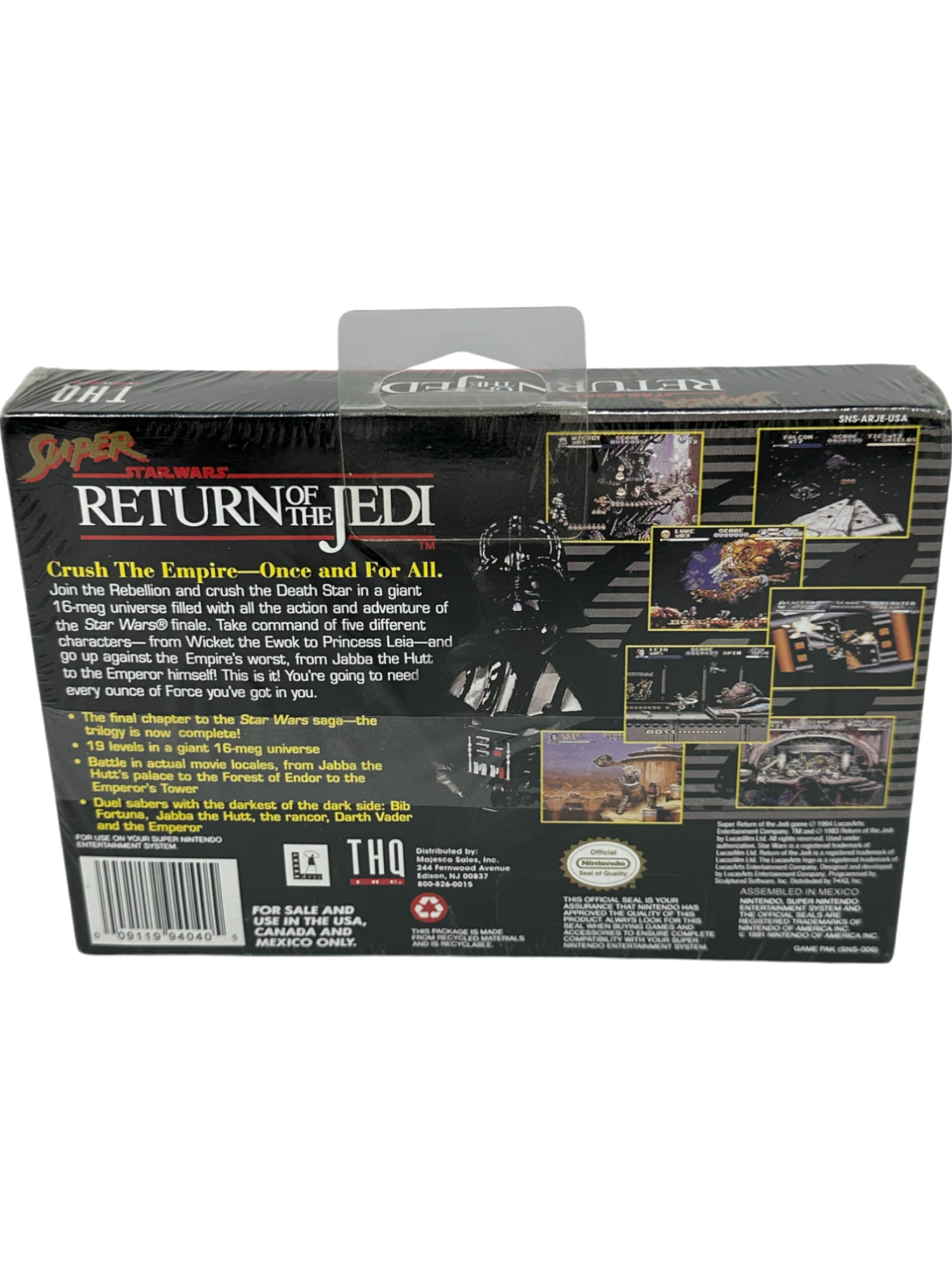 Item Description: The epic conclusion to the Super Star Wars trilogy arrives in Super Star Wars: Return of the Jedi, bringing high-speed action and cinematic platforming to the SNES! Play as Luke Skywalker, Han Solo, Princess Leia, Chewbacca, and even Wicket the Ewok as you battle through iconic locations from the film, including Jabba’s Palace, the Endor forests, and the Death Star. Wield a lightsaber, pilot speeder bikes, and take control of the Millennium Falcon in intense Mode 7 vehicle sequences. With fast-paced combat, massive boss fights, and a thrilling soundtrack, Super Return of the Jedi is an unforgettable Star Wars adventure. Can you defeat the Empire and restore balance to the galaxy?