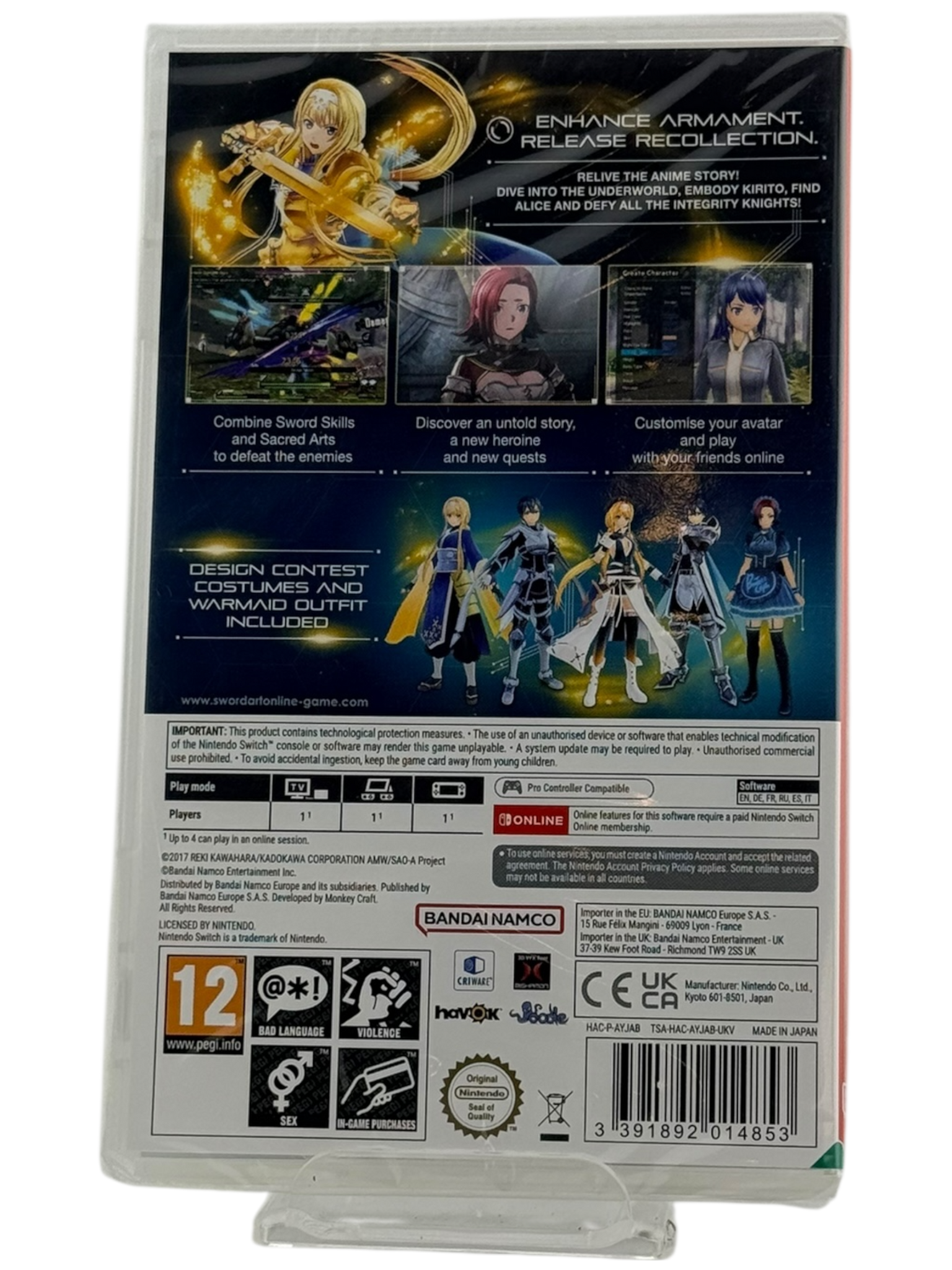 This Sword Art Online: Alicization Lycoris is brand new and factory sealed for the Nintendo Switch (PAL region). The original shrink wrap is fully intact, with no tears, punctures, or reseals. Includes all original components — cartridge, case, and inserts (if provided by the publisher). This is an authentic PAL edition, compatible with all Nintendo Switch consoles worldwide, and remains unopened and unplayed. Ideal for collectors or fans of the Sword Art Online series who appreciate pristine condition and regional exclusivity.