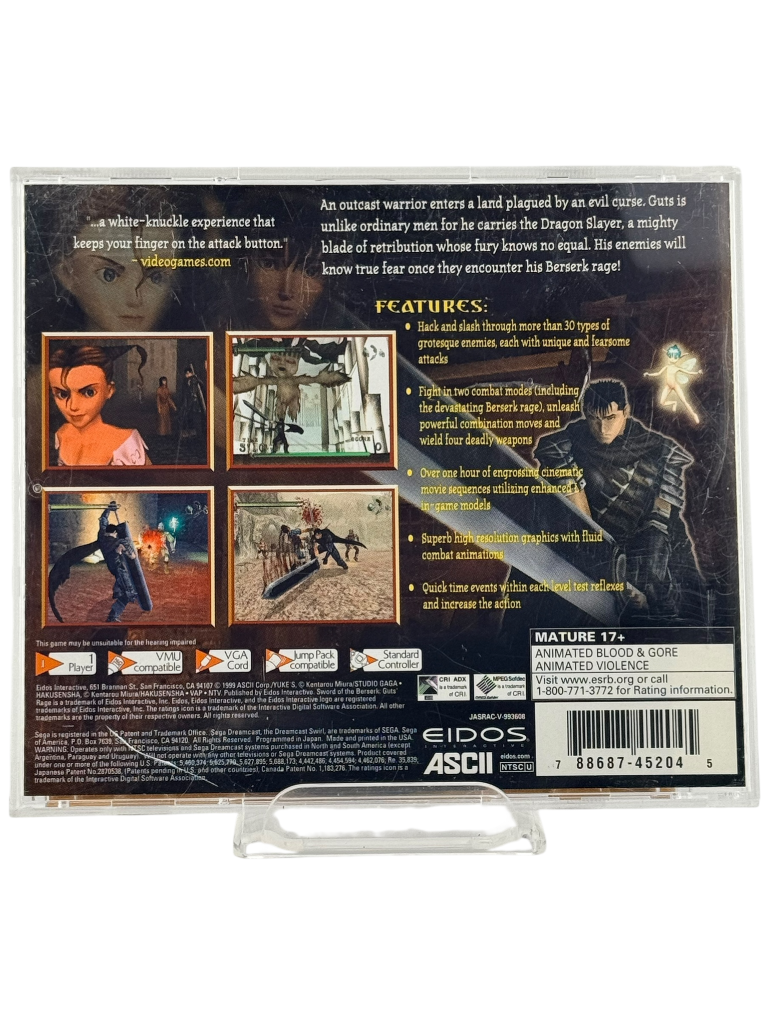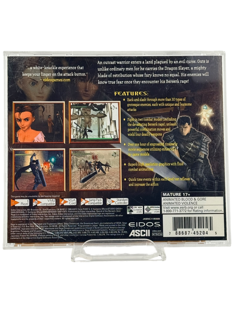 A cult favorite for fans of both the Berserk series and classic Dreamcast action games, Sword of the Berserk: Guts’ Rage stands as a testament to early 3D storytelling and atmosphere. Complete in box and fully authentic, this copy is a must-have for collectors and fans of dark fantasy adventures.