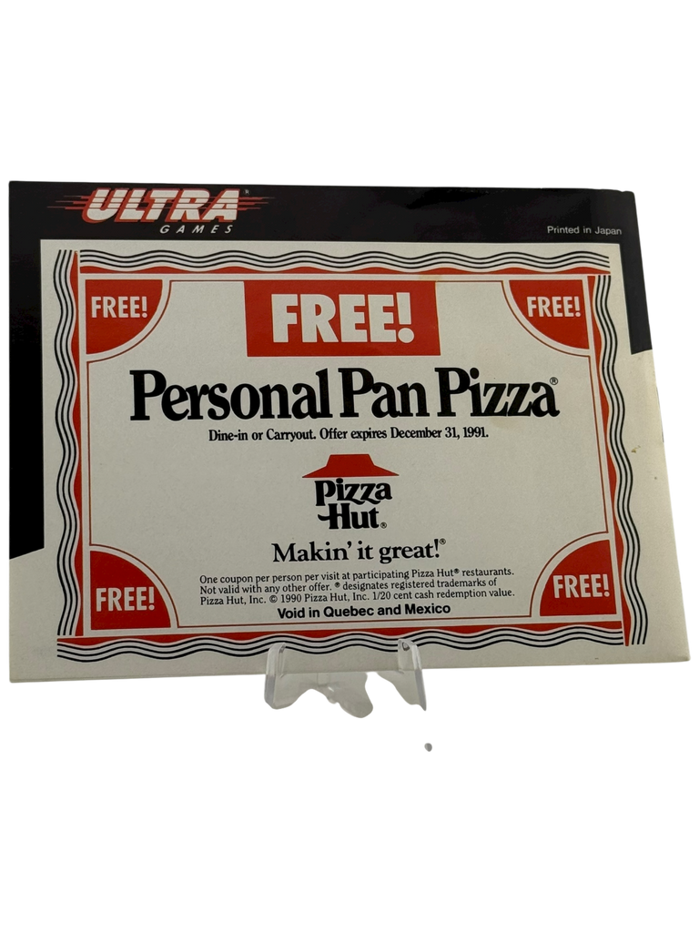 This copy is especially collectible as it includes the original free pizza coupon, a quirky and nostalgic tie-in that has become a sought-after piece of retro gaming history. Together with the cartridge and manual, this set is perfect for TMNT fans, NES collectors, or anyone who wants a piece of 8-bit turtle power complete with a slice of pop culture fun.