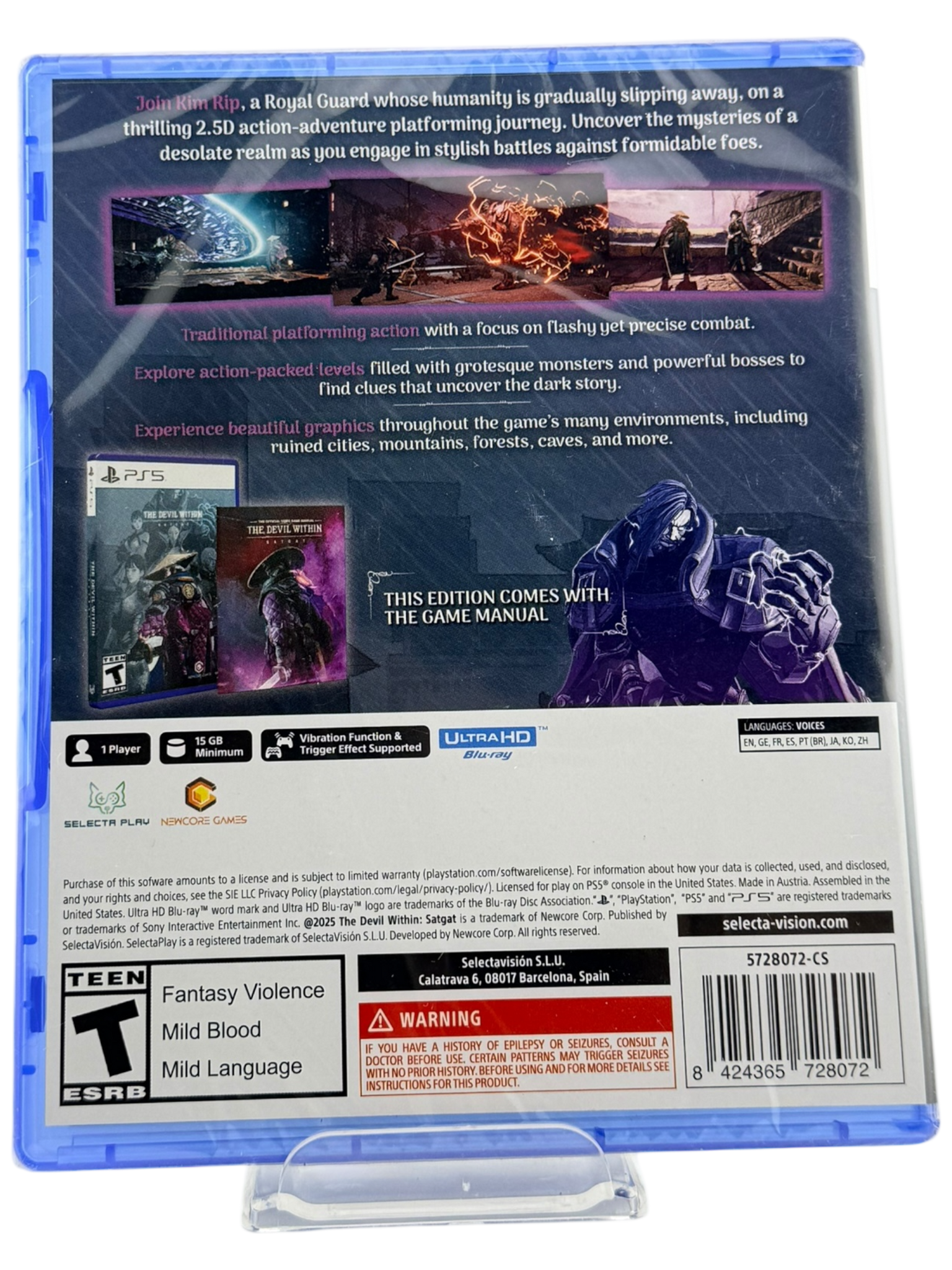 This is a brand new, factory-sealed copy of The Devil Within: Satgat for PlayStation 5. The game is sealed in its original retail packaging with the factory seal fully intact and unbroken. There are no signs of prior use, handling, or wear. All original contents are included exactly as released by the publisher. Please refer to the photos for exact condition and seal details.