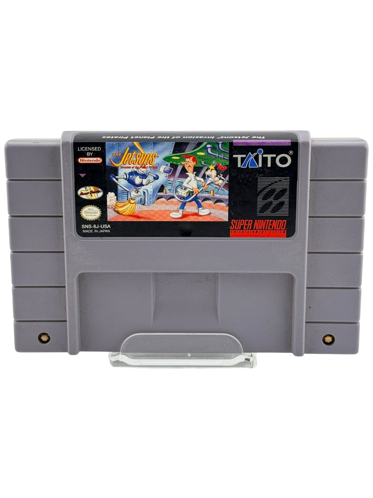 This is a loose game cartridge copy of The Jetsons: Invasion of the Planet Pirates for Super Nintendo Entertainment System (SNES). This listing includes the original cartridge only; the original box, manual, and inserts are not included. The cartridge has been tested and functions properly. Cosmetic condition may show light to moderate wear consistent with age and normal use, with no issues affecting gameplay. Please review the photos carefully for exact cartridge condition.