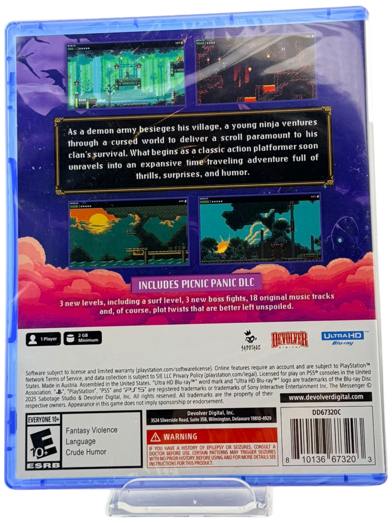 Celebrated for its tight controls, clever level design, and inventive storytelling, The Messenger is a must-play for fans of classic action games and modern indie masterpieces alike. This sealed PS5 copy is a perfect addition to any PlayStation 5 collection or Devolver Digital fan’s shelf.
