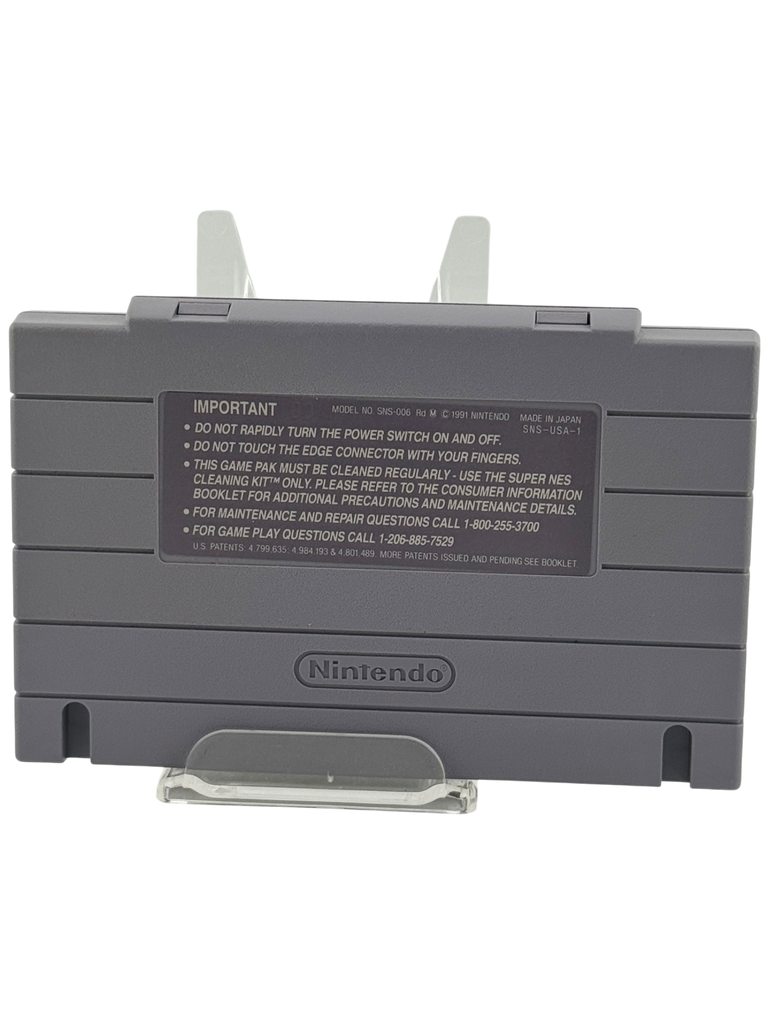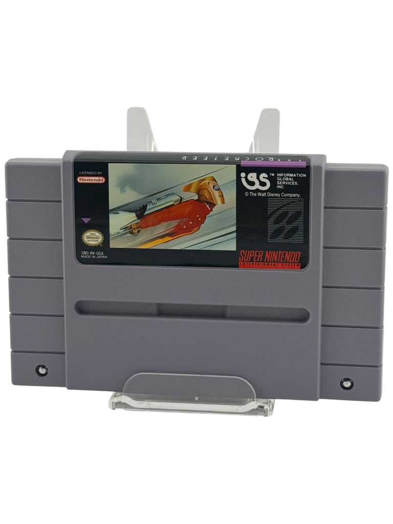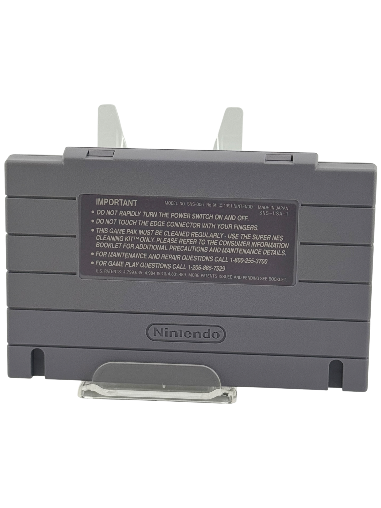 Based on the 1991 Disney film, The Rocketeer lets players step into the jetpack-powered boots of Cliff Secord as he takes to the skies in a side-scrolling adventure. Blending platforming, shooting, and flight segments, the game recreates the pulp-style action and retro heroism of the movie. With its vintage aviation themes and comic-inspired presentation, it stands as a unique licensed title in the SNES library.