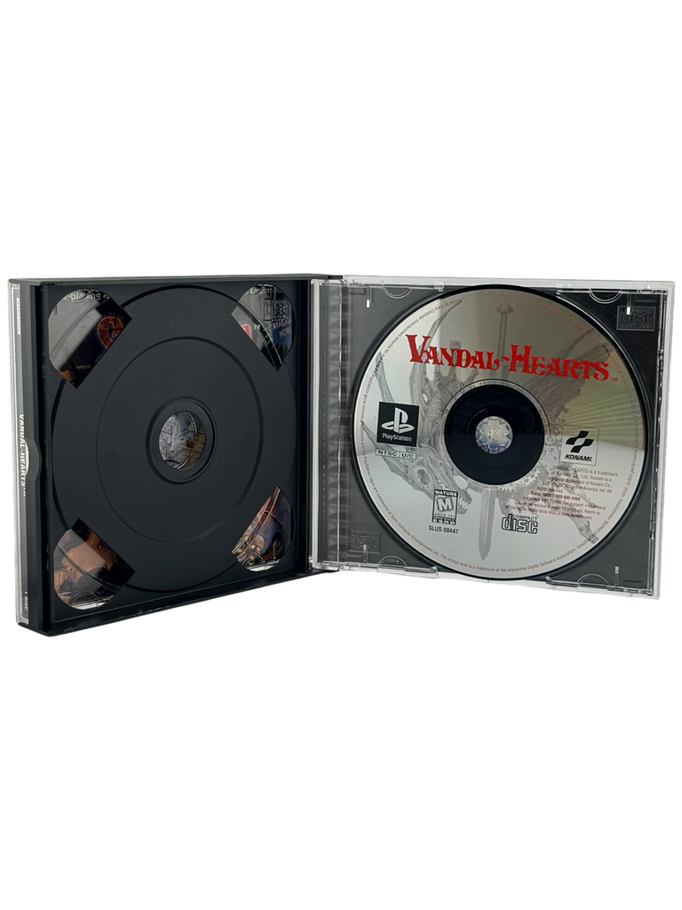 This Vandal Hearts listing for PlayStation 1 includes the original game disc and original PS1 case with artwork, but does not include the manual. The disc has been fully inspected, cleaned, and tested to ensure excellent working condition, showing only minor surface wear consistent with normal use. The original case and cover insert are in very good shape with typical shelf wear but no cracks or major damage. All components are authentic to the official PS1 release. Photos will show the exact item you will receive.