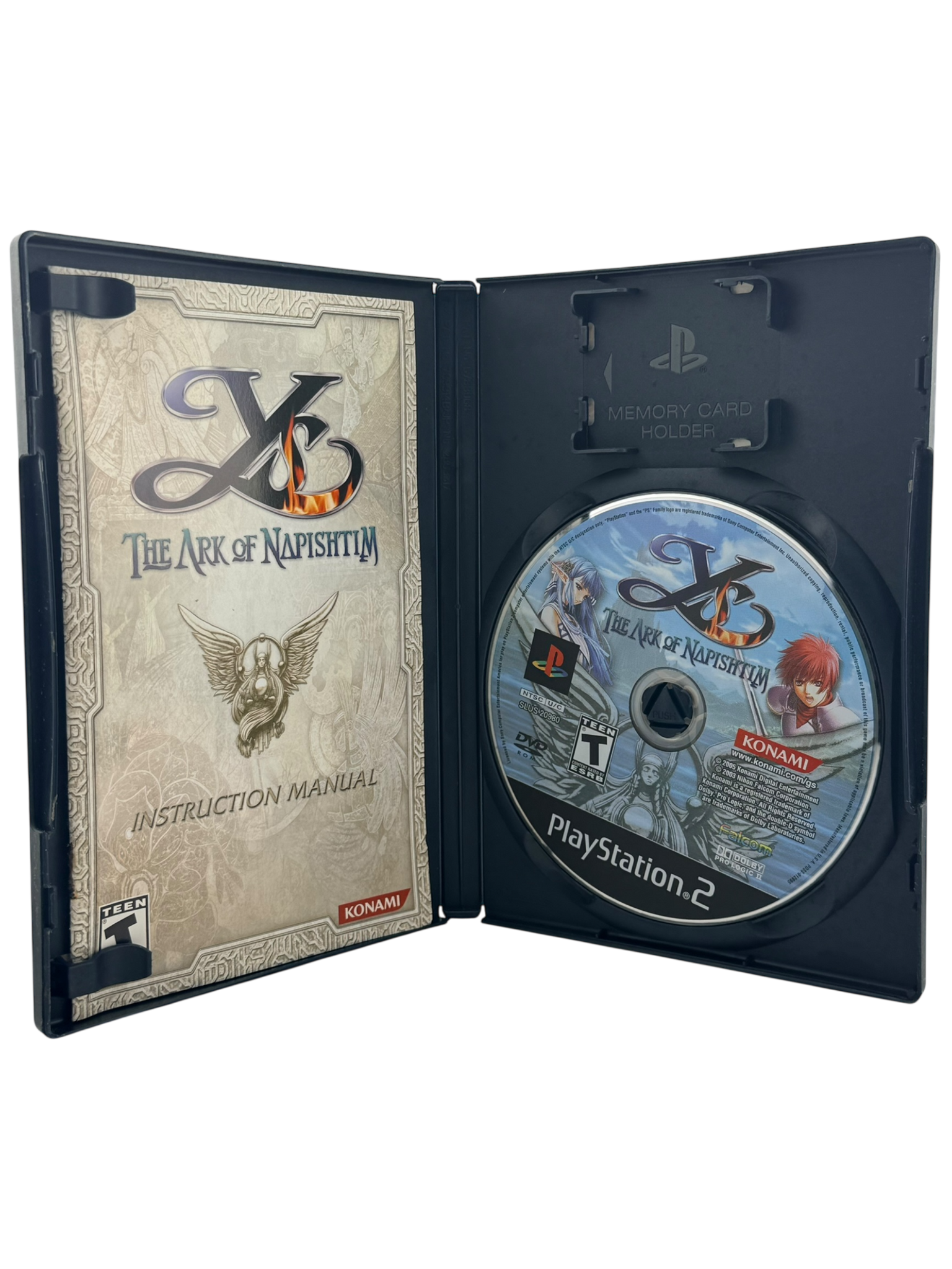 This is an authentic Ys: The Ark of Napishtim game for PlayStation 2. The listing includes the original game disc, instruction manual, and original PlayStation 2 case, all in excellent condition. The disc has been tested and verified to function properly, and both the case and manual show only light shelf wear consistent with careful use. All components are original and official — no reproductions or replacements are included. Please review photos for an accurate representation of condition before purchase.