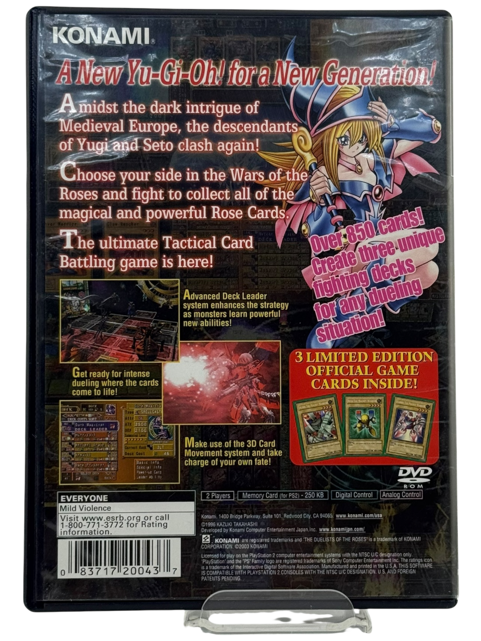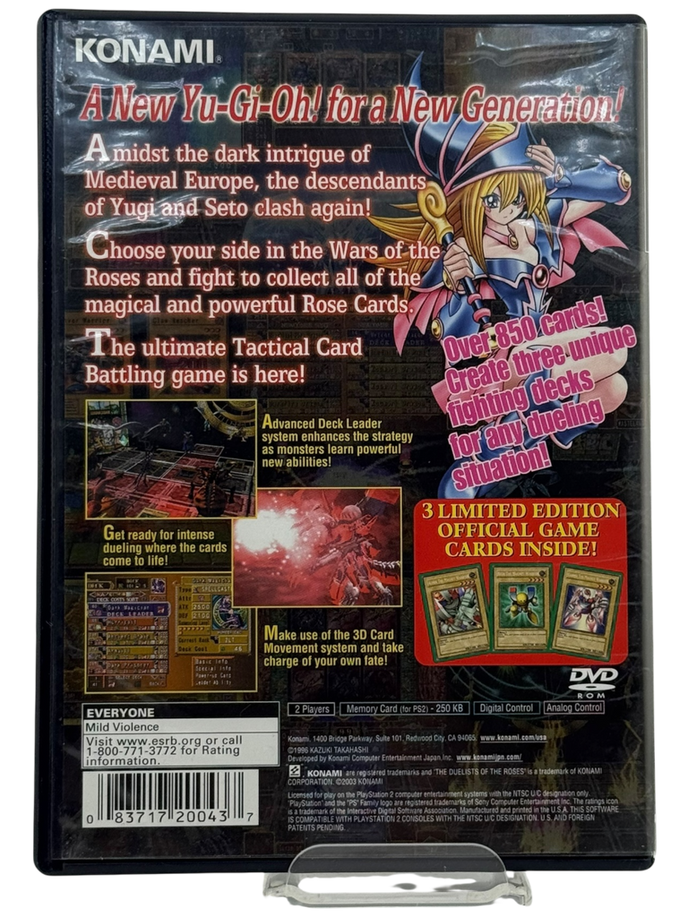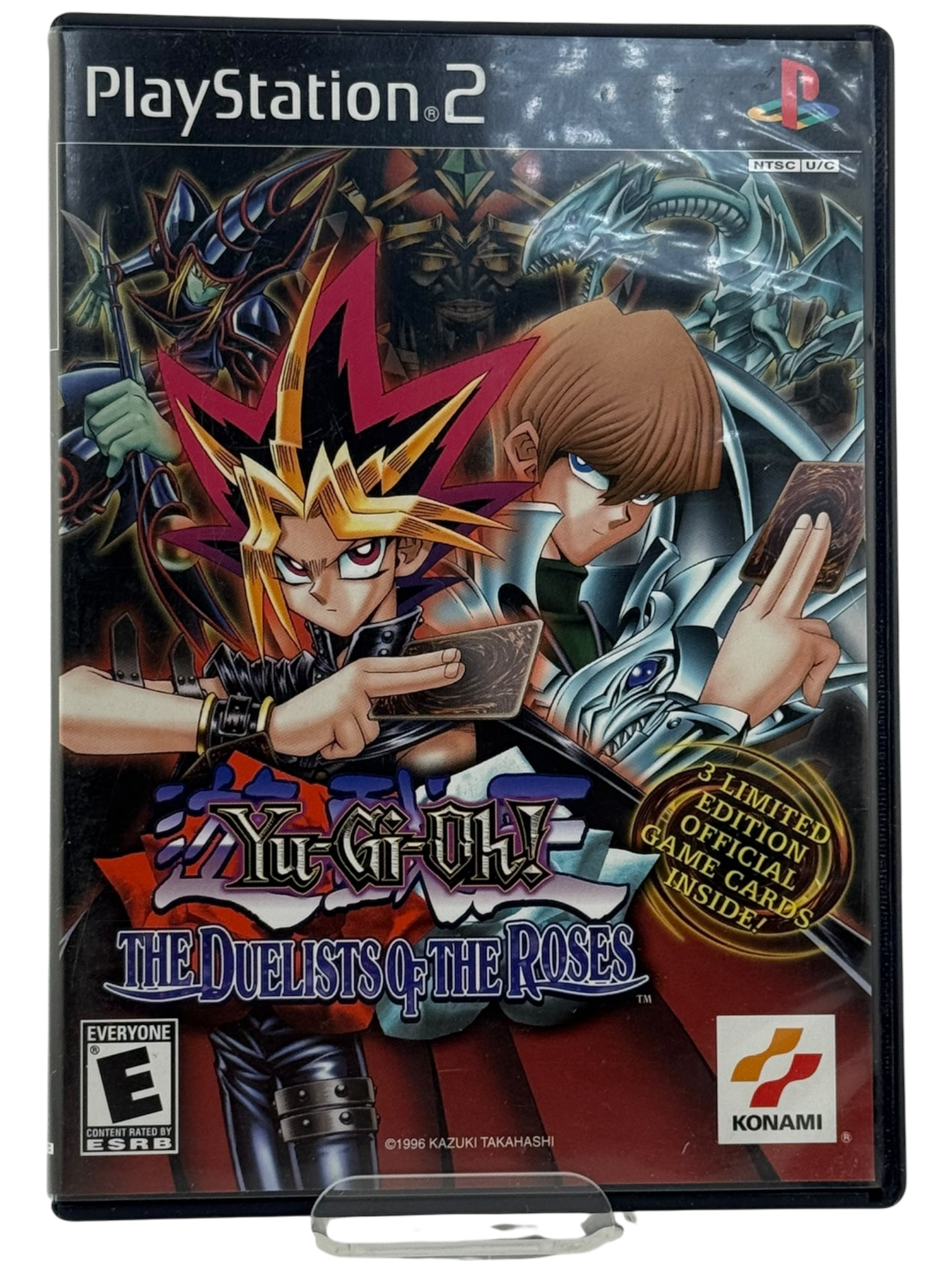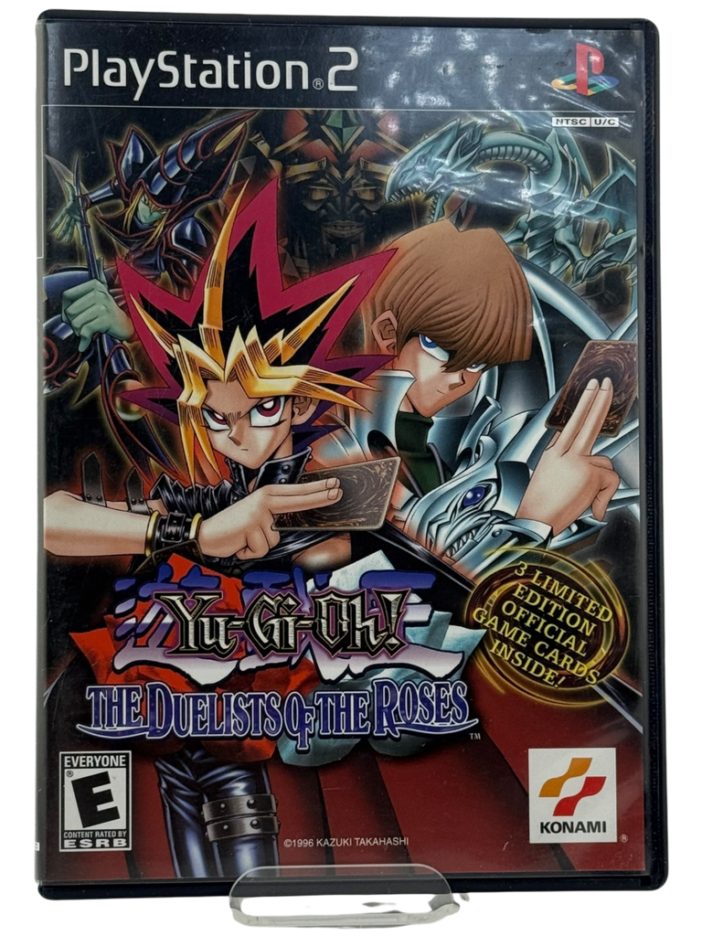 This is a complete in box copy of Yu-Gi-Oh! The Duelists of the Roses for the PlayStation 2. It includes the original game disc, manual, and case. All components are authentic and in good condition. The disc has been tested and is fully functional. The case and manual show typical light wear from normal use—please review listing photos for full condition details.