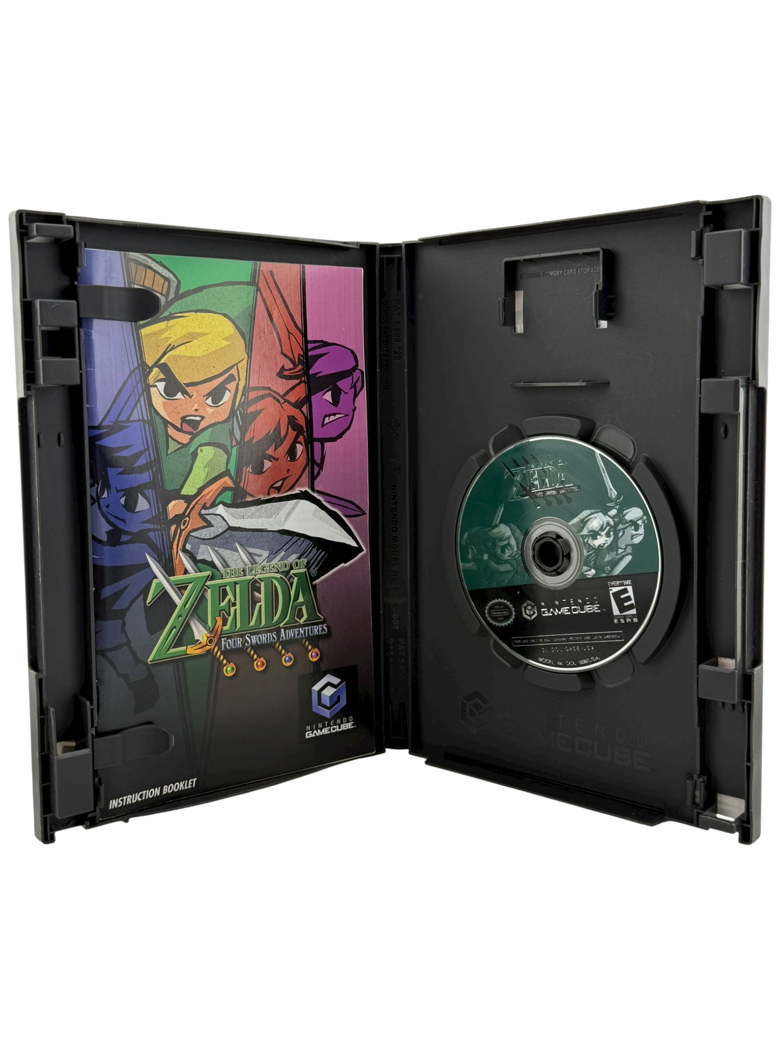 This listing is for The Legend of Zelda: Four Swords Adventures for the Nintendo GameCube, complete in box (CIB). It includes the original game disc, manual, and case. The disc has been tested to ensure proper functionality, and the manual is intact for reference. All items are authentic Nintendo products—no reproductions. Please review the photos carefully to see the exact condition of the case, artwork, disc, and manual.