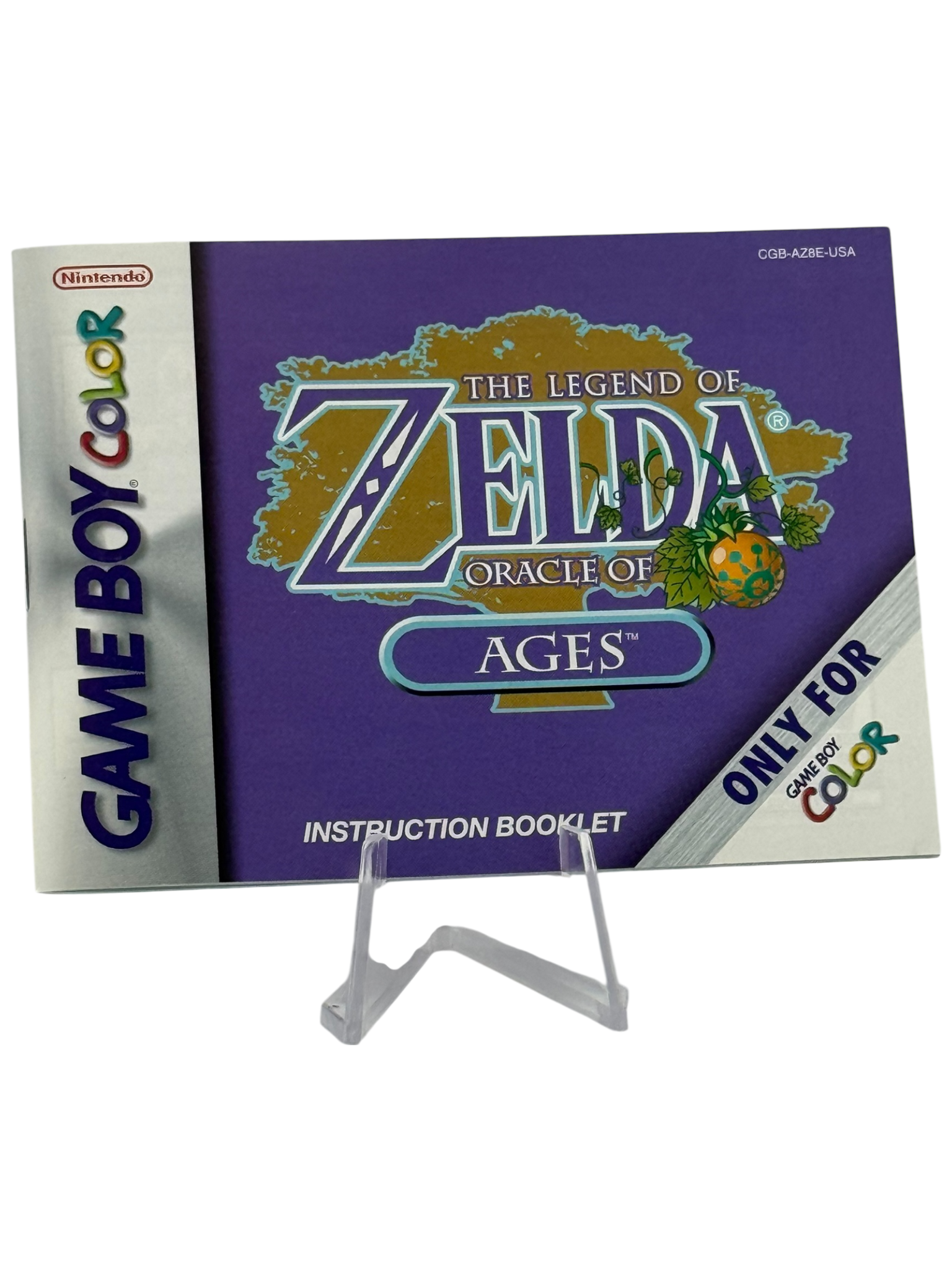 This is a complete in box (CIB) copy of The Legend of Zelda: Oracle of Ages for the Nintendo Game Boy Color. It includes the original cartridge, manual, and box. The cartridge has been tested and is fully functional, loading and playing without issue. The box and manual are in good condition, showing light shelf and handling wear consistent with age. Please review the provided photos for the most accurate visual reference of the item’s condition.
