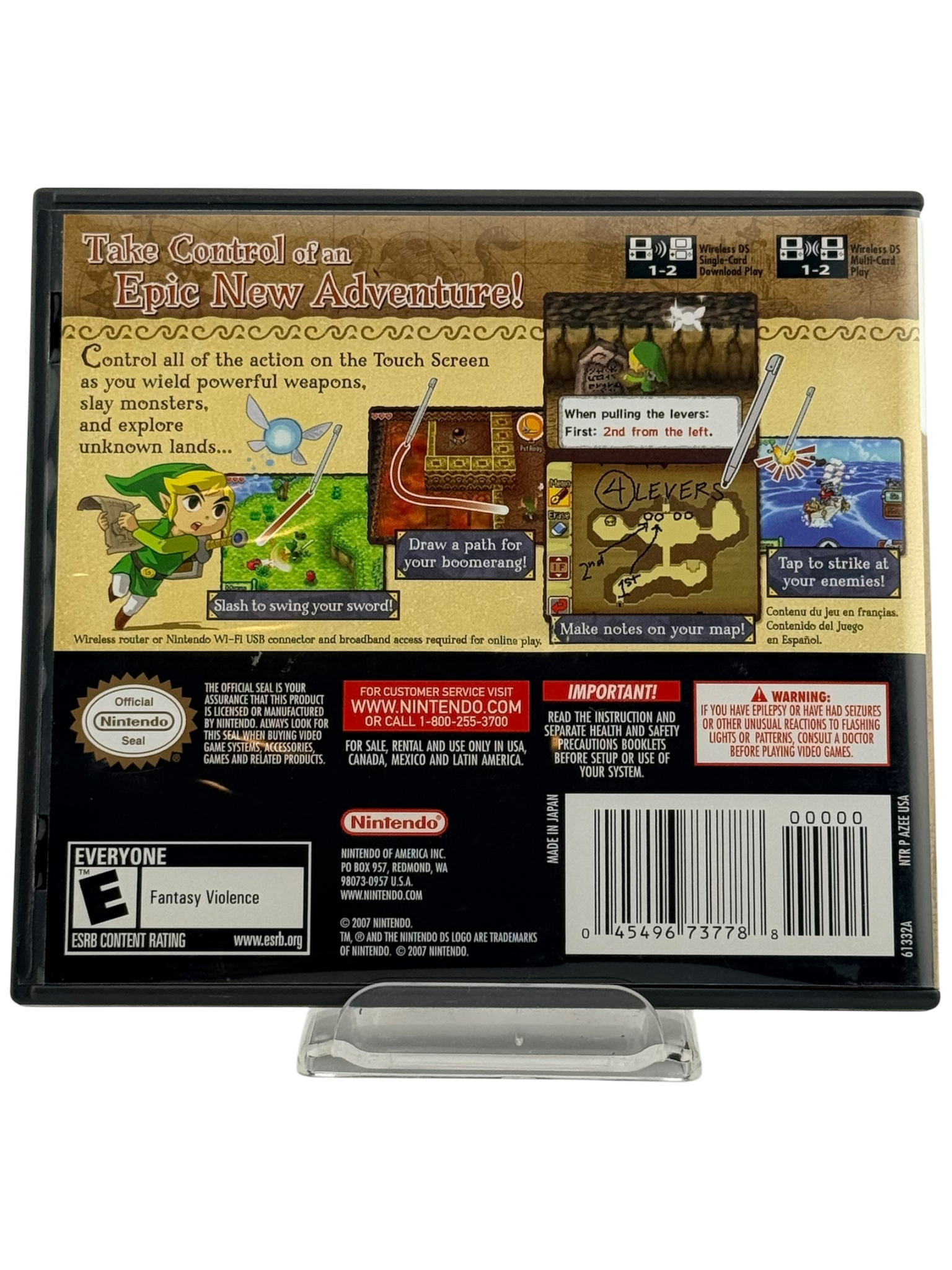 This listing is for The Legend of Zelda: Phantom Hourglass for the Nintendo DS, complete in box. The set includes the original game cartridge, instruction manual, and original case. The cartridge has been tested and is fully functional. The label is clean and vibrant, the manual is intact with only minimal wear, and the case shows light shelf scuffing but remains in excellent overall condition. Please refer to photos for the exact condition before purchasing.