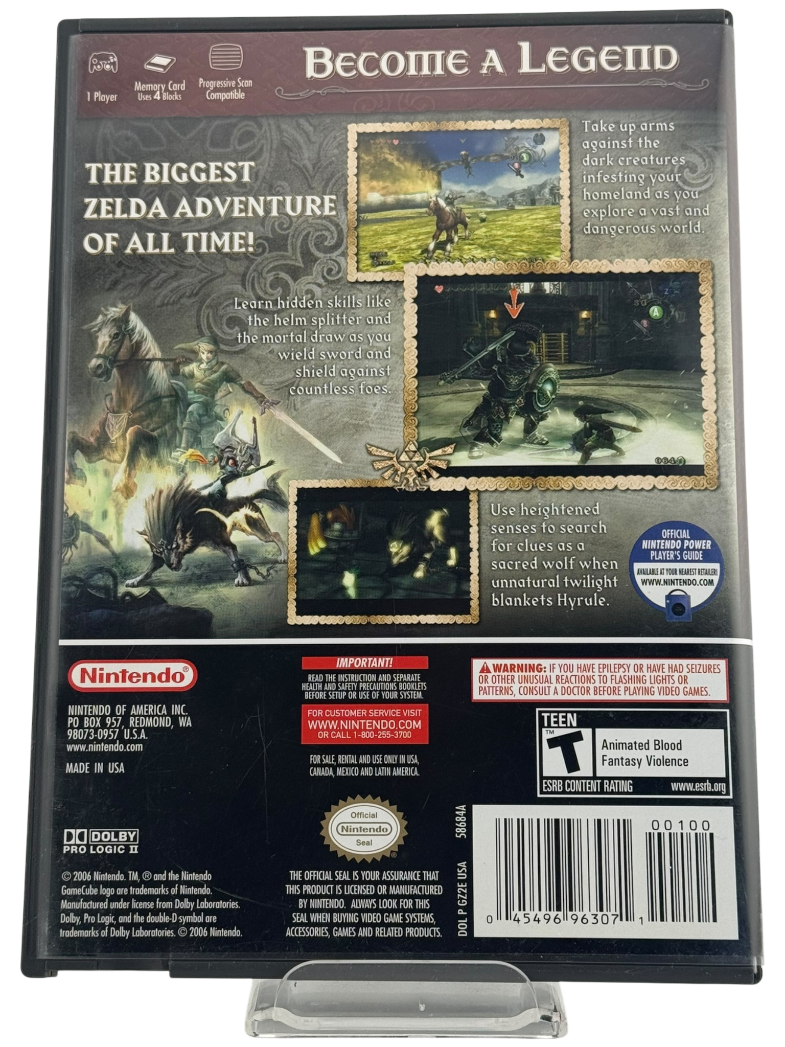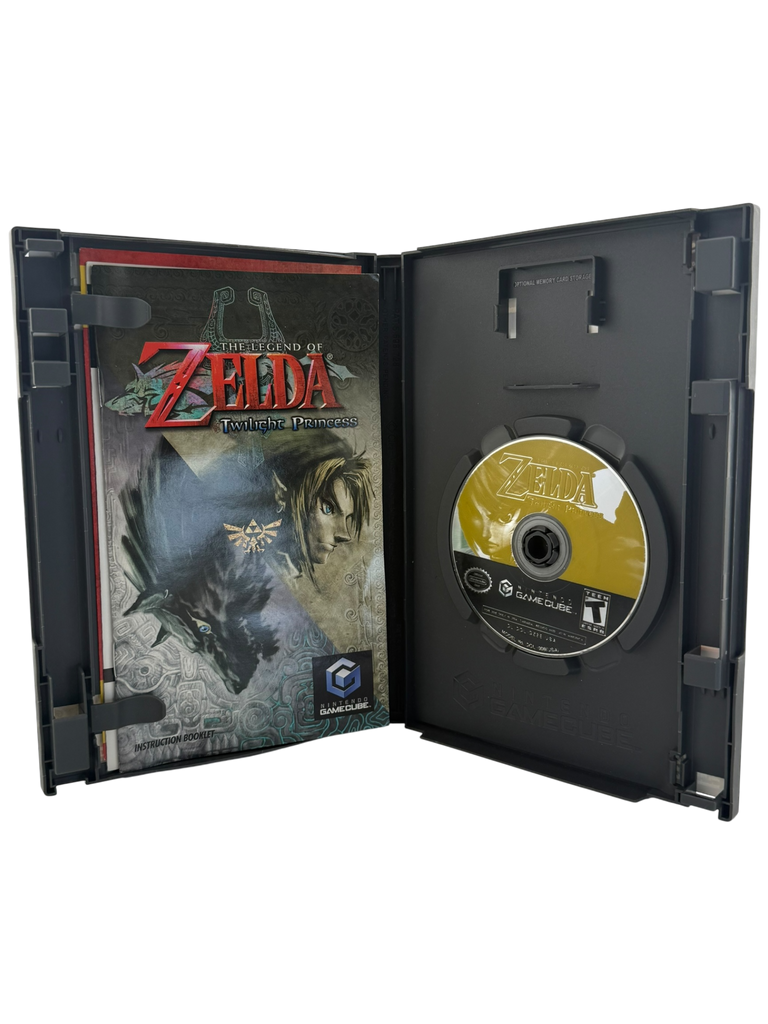 This is an authentic The Legend of Zelda: Twilight Princess for the Nintendo GameCube, complete in box. Includes the original game disc, manual, and case. The disc has been tested and plays flawlessly, with only light surface wear. The manual is in excellent condition, and the original case shows minor shelf wear but remains sturdy and display-worthy. Please see photos for full condition details.