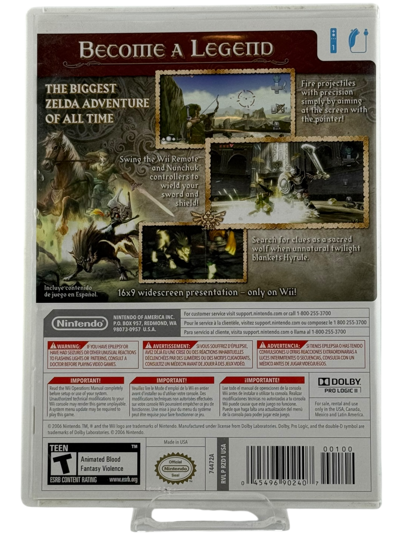 Item Description: Step into the dark, mystical world of The Legend of Zelda: Twilight Princess, where the fate of Hyrule hangs in the balance. As Link, embark on an epic quest to save the kingdom from a mysterious shadow that threatens to plunge it into eternal twilight. With breathtaking visuals, immersive gameplay, and a gripping storyline, Twilight Princess delivers a legendary adventure that will captivate both newcomers and longtime Zelda fans.
